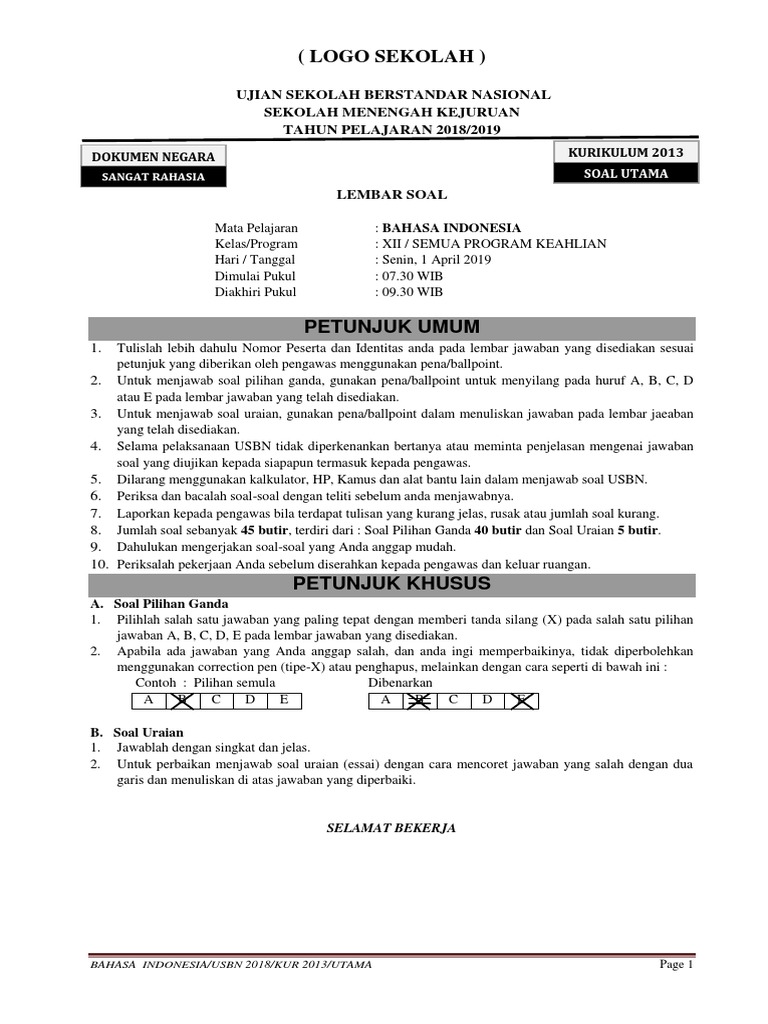 untuk "Contoh Lembar Soal Ujian Madrasah : Kop Soal Usbn 2019 Soalsiswa Com : Contoh lembar soal ujian madrasah."