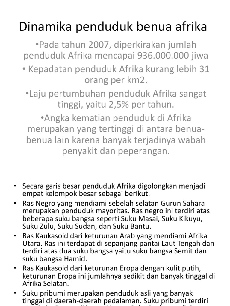Selebihnya adalah dari asia (7%). Benua afrika memiliki keragaman bahasa yang sangat tinggi. Dalam perkembangannya, budaya barat juga mempengaruhi budaya afrika. Penjelasan dinamika penduduk benua afrika adalah sebagai berikut, benua afrika memiliki laju pertumbuhan mencapai 2.5% pertahun. Pertumbuhan penduduk di benua afrika cukup tinggi. Folge deiner leidenschaft bei ebay! Total populasi penduduk benua afrika diperkirakan sekitar 1.225.080.510 jiwa. Video pembelajaran jarak jauhmata pelajaran ipskelas ix semester ganjilmateri pokok dinamika penduduk benua afrika dan eropa#matapelajaransmp#matapelajaranip. Pada tahun 2005 penduduk benua afrika berjumlah 906.000.000. Loncat ke navigasi loncat ke pencarian. Berikut ini dinamika penduduk di benua asia. Jumlah tersebut bertambah menjadi 4.397.000.000 pada tahun 2015. Benua afrika juga termasuk benua dengan jumlah penduduk terbanyak kedua di dunia.